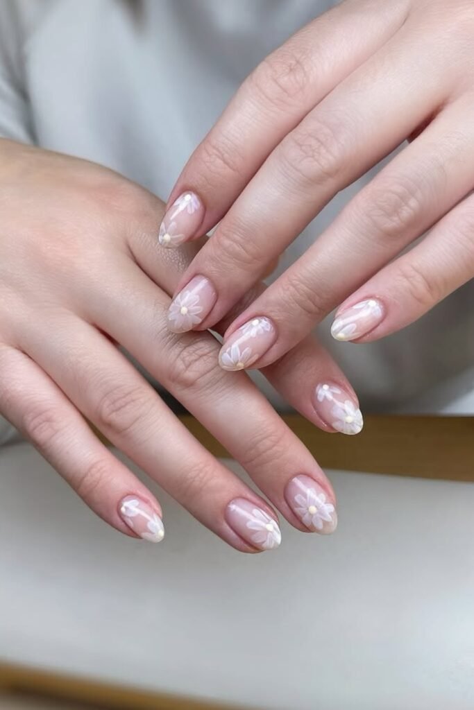 When you want nails that feel sweet and fresh without too much color, tiny daisies always work.