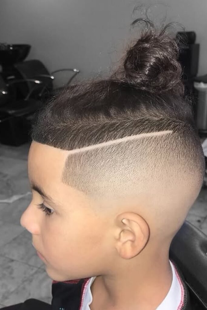 If your child likes keeping some length but you still want the sides clean, you’ll find a man bun fade is a cool compromise.