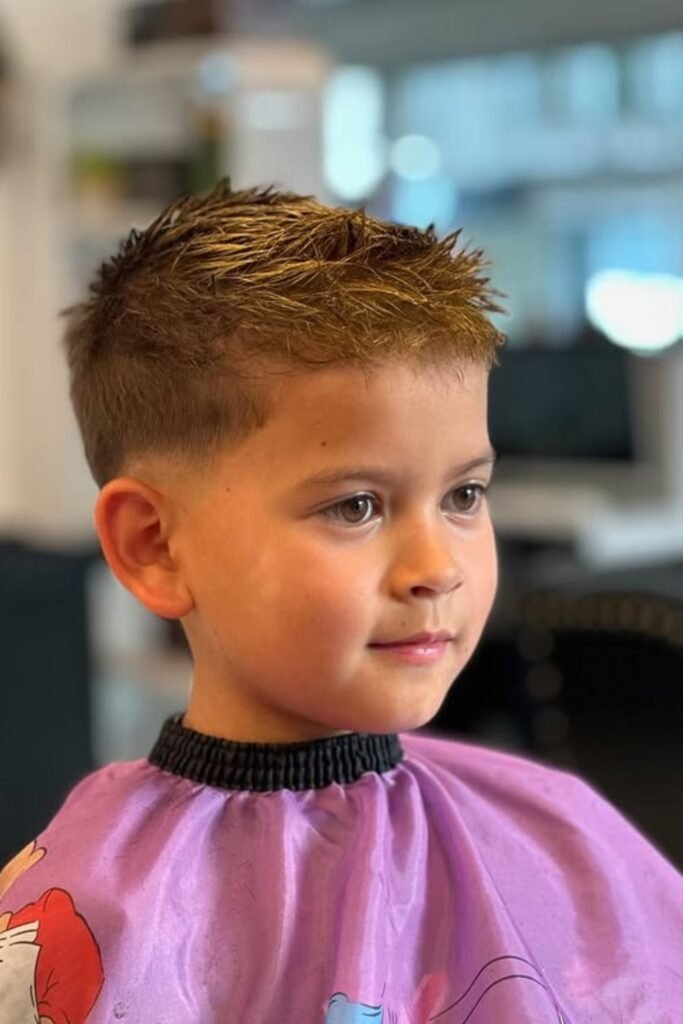 You might want a haircut that gives your kid an energetic, playful look without you doing much. You’ll find a spiky mid fade does exactly that.