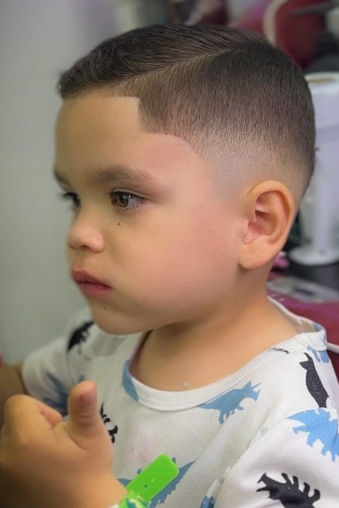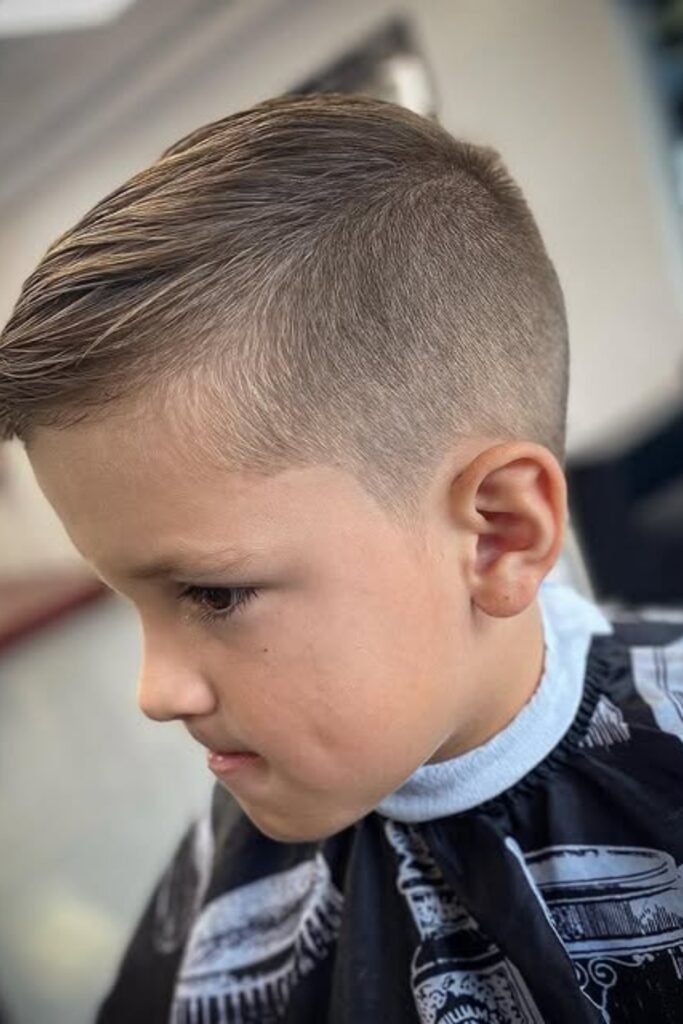 Not every fade needs to feel edgy. You’ll see a side swept fade gives your child a neat, polished look while keeping it relaxed.
