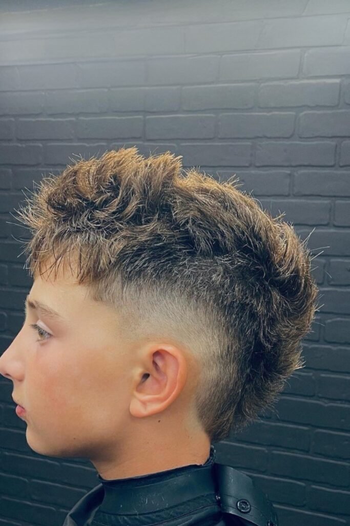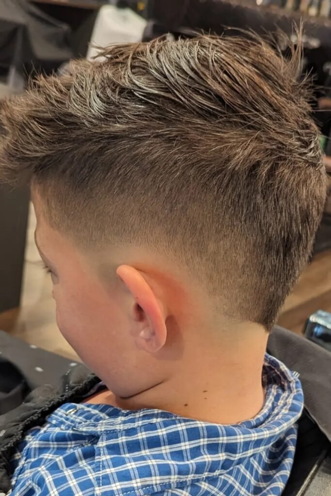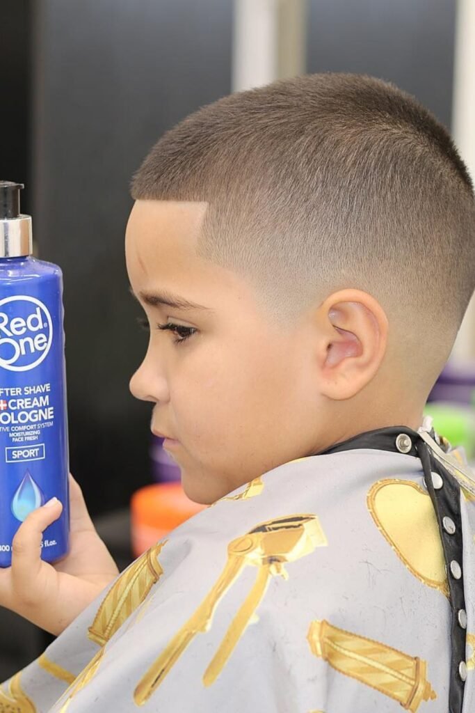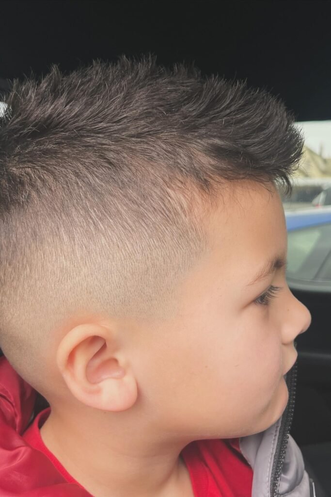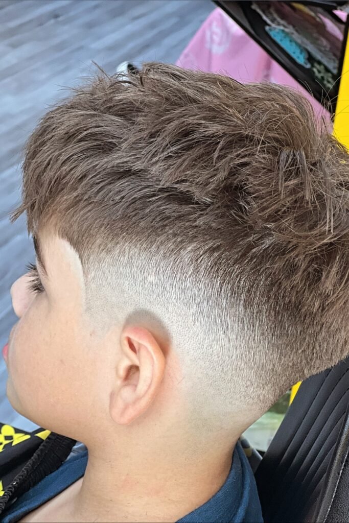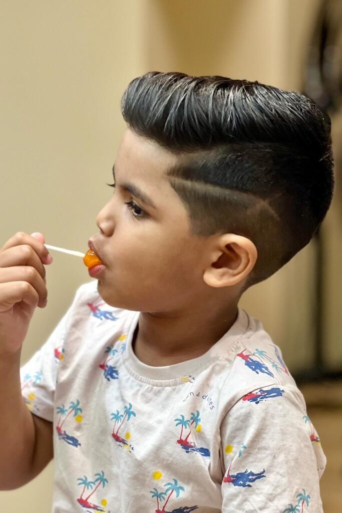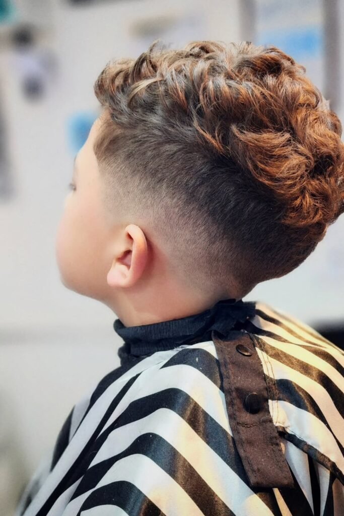 You can style the top in many ways maybe a short crop, a curly top, a comb-over, a side part, or even a mini pompadour, depending on what you want and your child’s hair type.