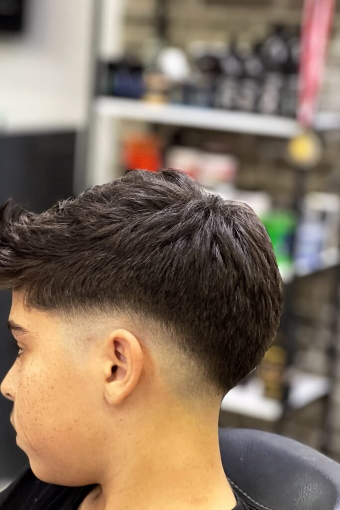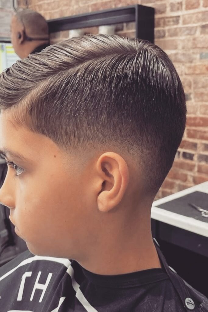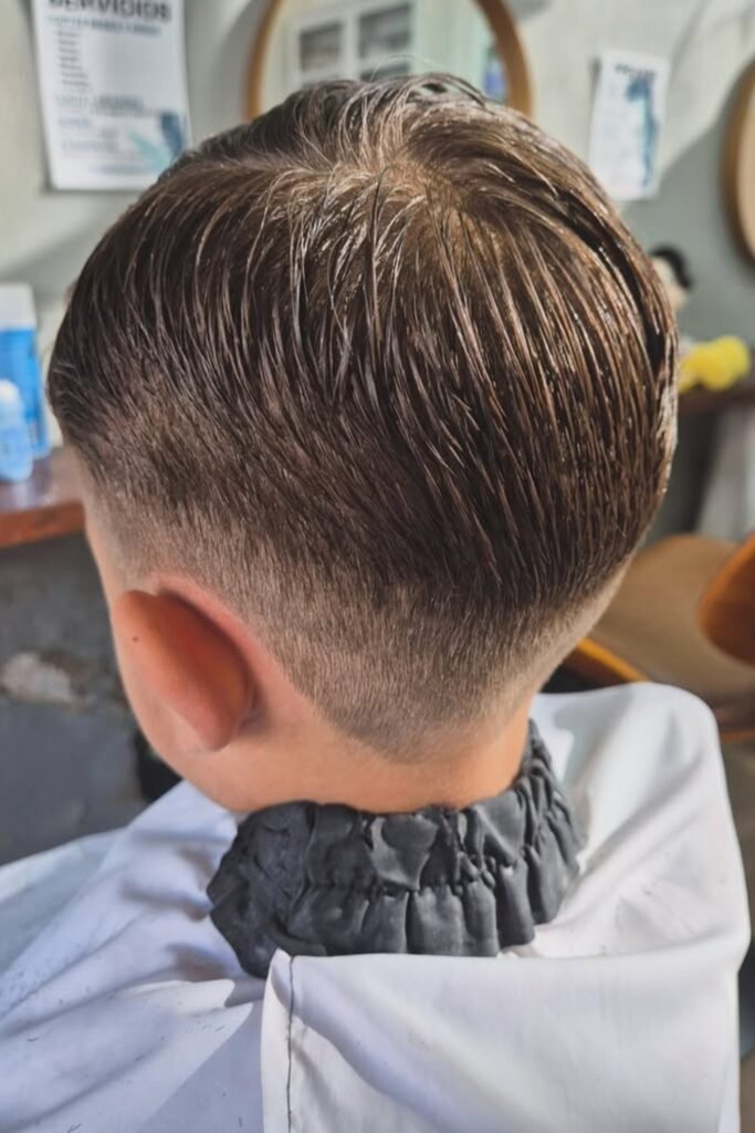 You should tell the barber to leave enough length on top so it sits naturally, and you’ll see it works well for school, sports, or kids who don’t want a haircut that looks too strict or edgy.