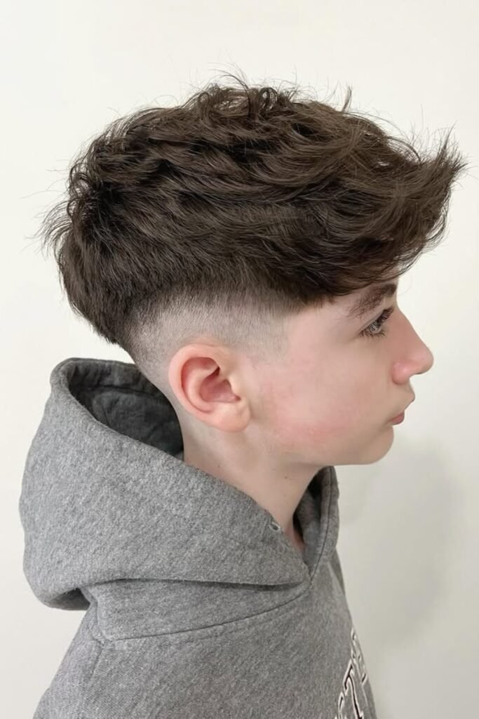 You might pick this if your child has thick or loose curls. You can let the curls take center stage while the low fade quietly keeps the sides and back clean.