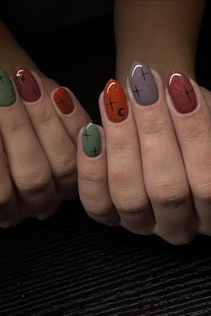 If you love grounded May vibes, matte olive, rust, mustard, and muted plum give your nails a calm, artsy feel.