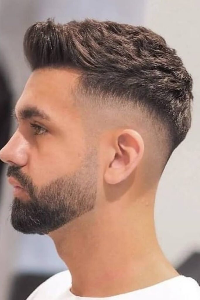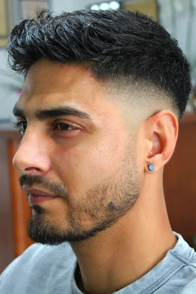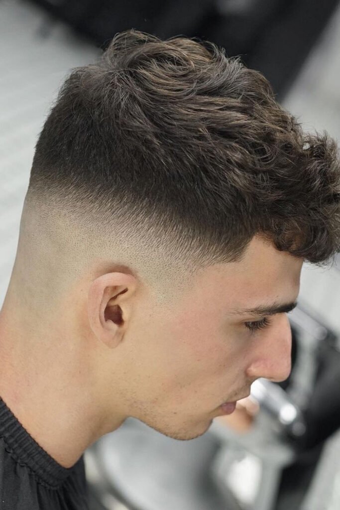 This works well if you don’t want anything slick or structured. You can ask your barber for a mid fade with a soft blend and a choppy, textured top.