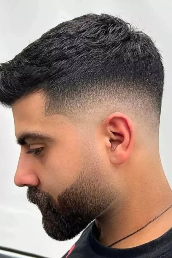 Blending a mid fade into a short beard creates a clean transition that makes the haircut feel complete, not separate.