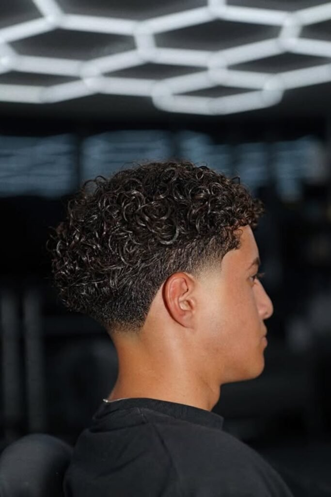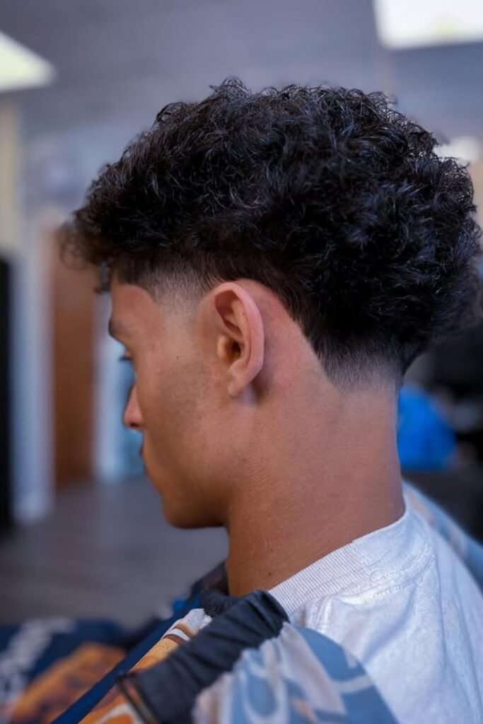 It’s a strong choice if your curls grow dense fast. You can keep the taper clean and controlled, but leave enough length on top so the curls hold their shape and don’t collapse.