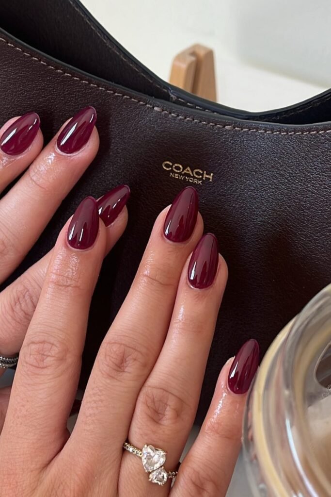 A deep cherry-mocha tone gives your nails a warm, chocolate-red finish that works perfectly for fall coffee dates or nights out.