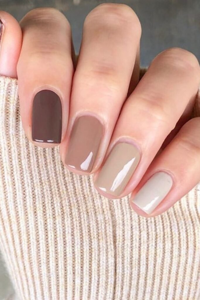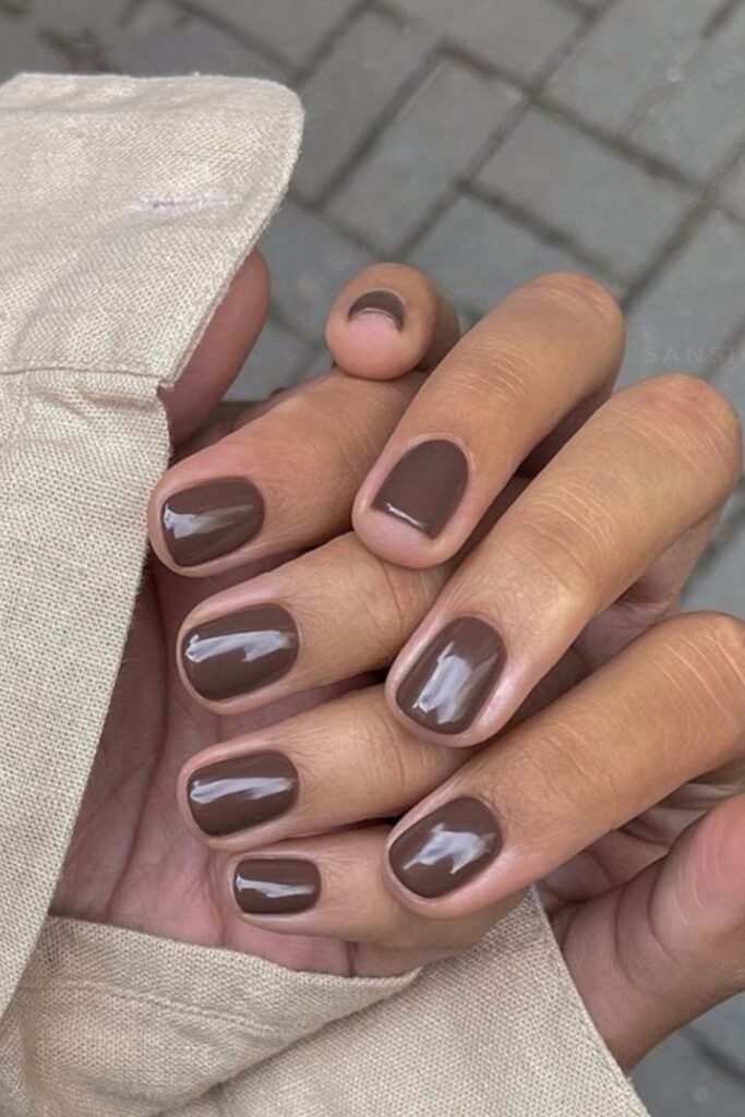 You get a neat, everyday look when you try a cool mocha shade on short rounded nails.