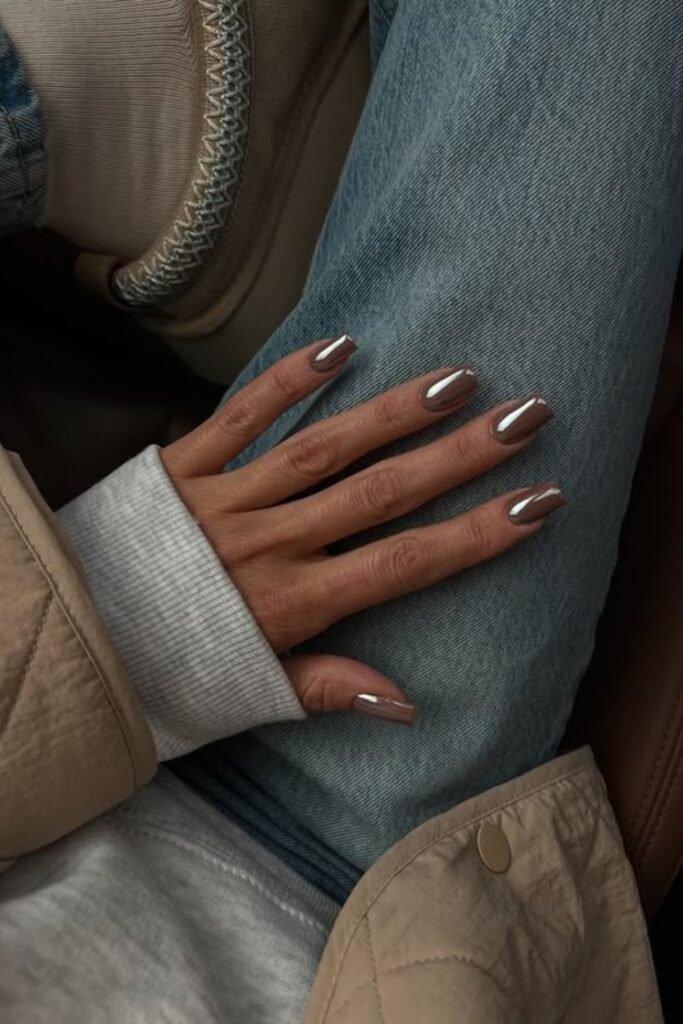 A rich matte mocha instantly gives your nails that clean, modern look that fits winter coats and chunky sweaters.