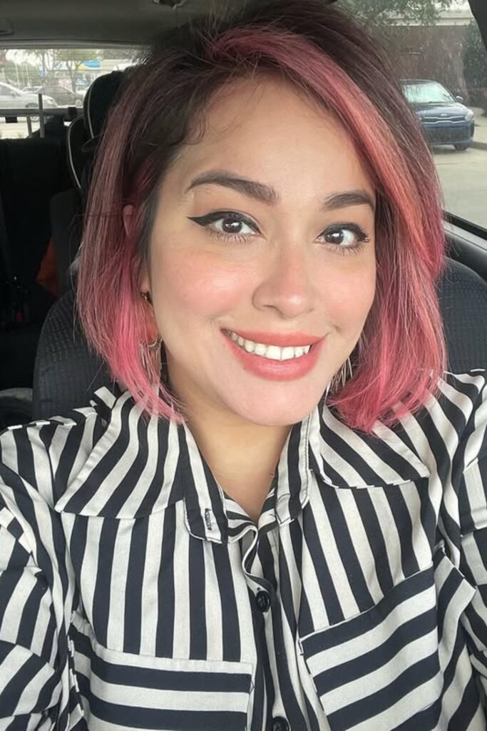 You have to try an angled bob with a pop of pink to get a short cut that’s lively and full of character.