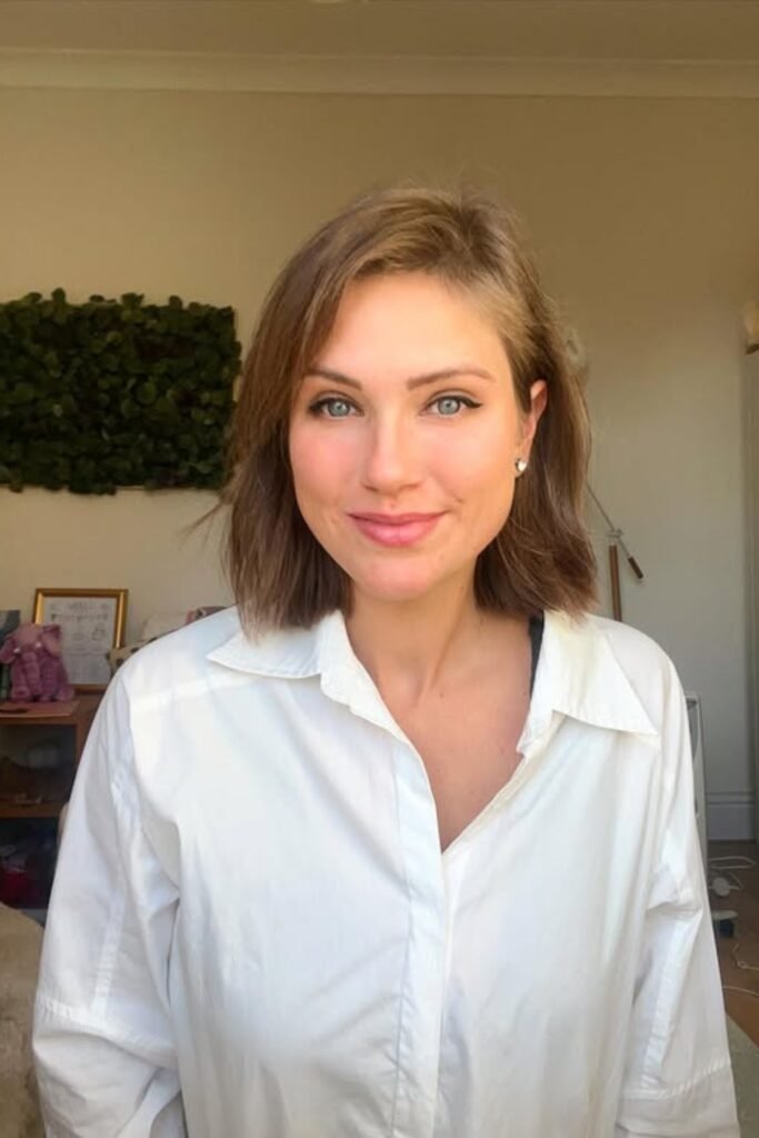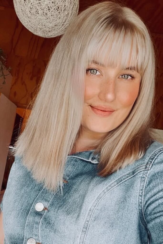You can consider blunt bangs with a straight lob if you want a bold yet youthful style that’s easy to maintain.