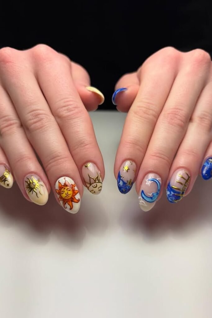 If you like your nails to tell a full story instead of sticking to one mood, this sun-and-moon mix is the way to go.