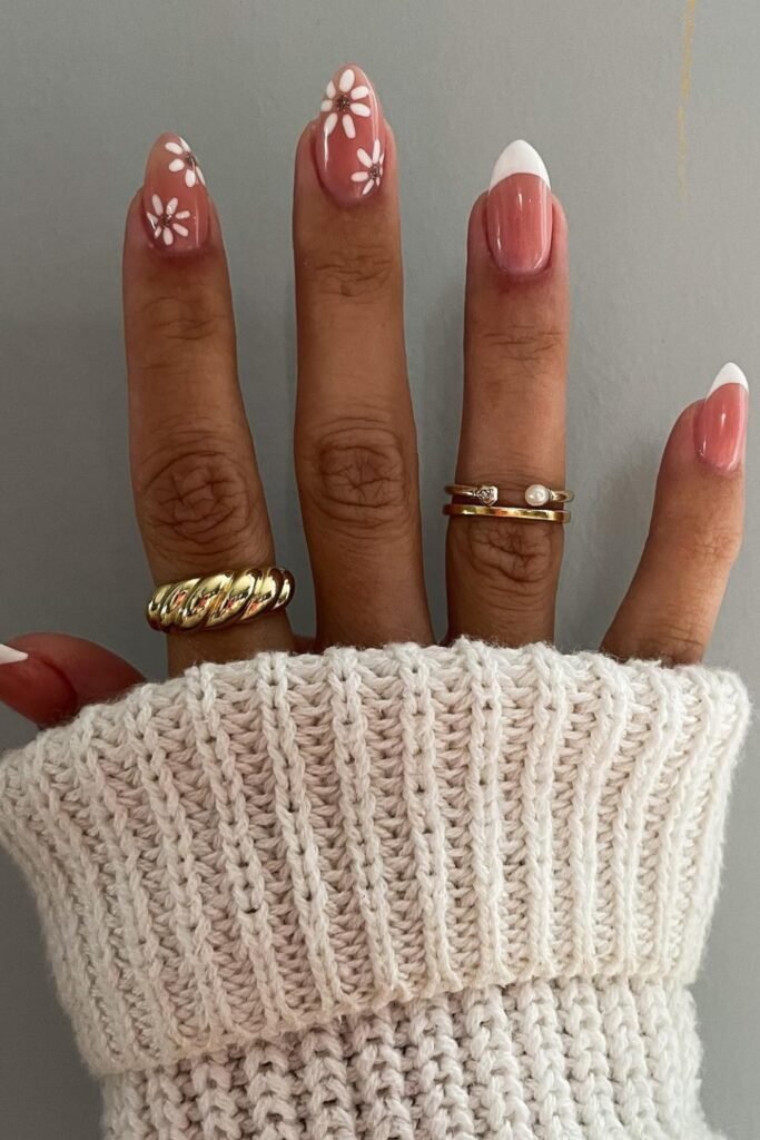 You can mix classic French tips with cute daisy accents so your nails feel timeless but fun.
