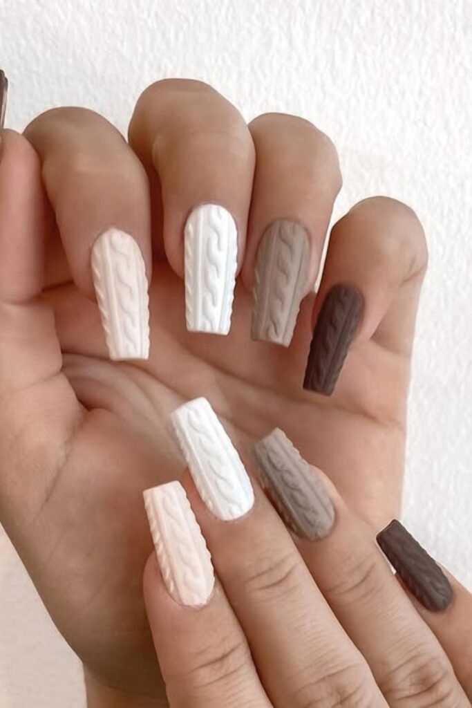 When your nails match your cozy outfits, you can mix cream, taupe, and chocolate brown in a soft gradient to add depth while keeping things wearable.
