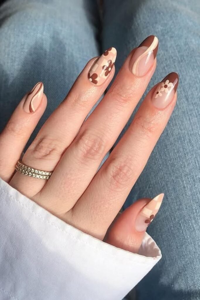 You get a warm, retro-inspired look with different shades of brown swirling together on your nails.