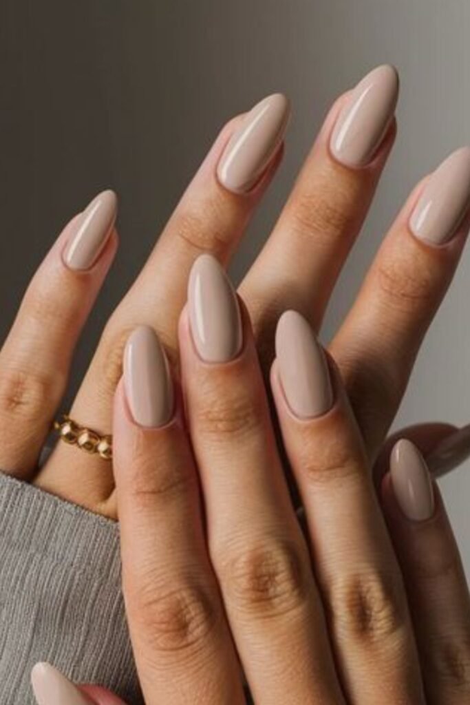These creamy taupe almond nails make your hands look clean, polished, and effortlessly elegant, you can wear them in work, weddings, or just every day.