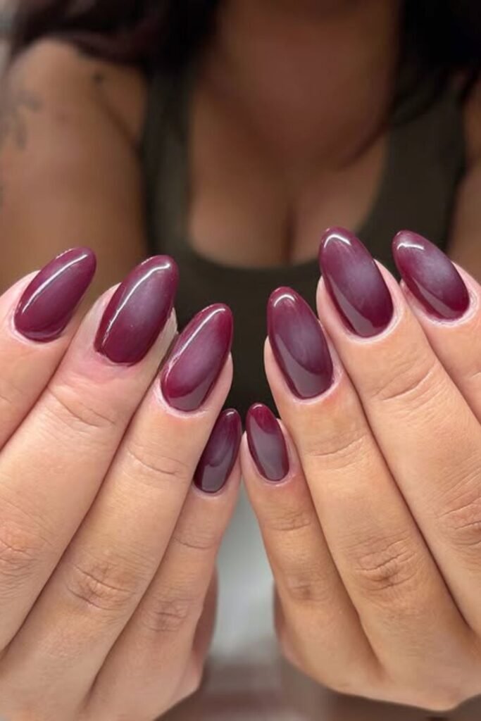 This deep plum shade feels rich, cozy, and instantly seasonal, even without extra design.