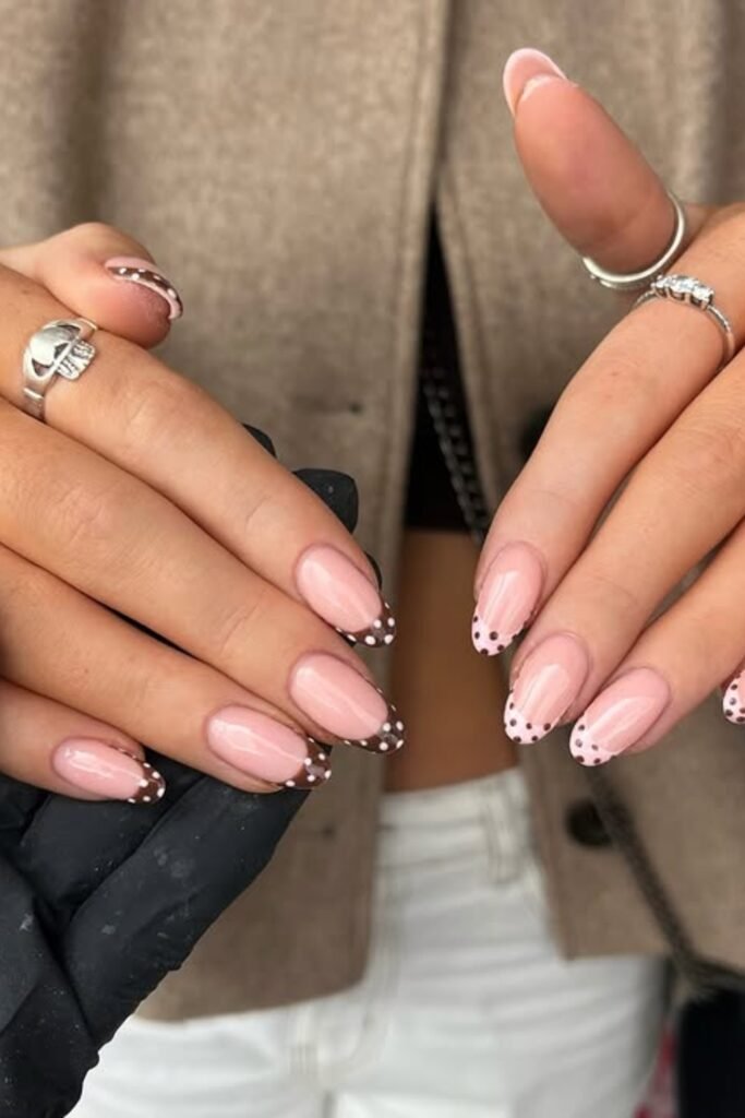The soft pink base keeps your nails clean and wearable, while the dotted tips add just enough personality.