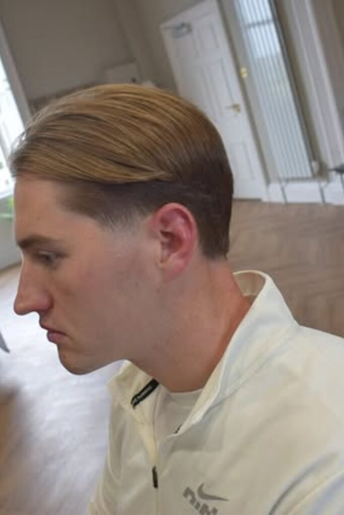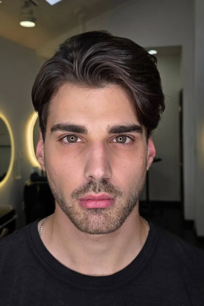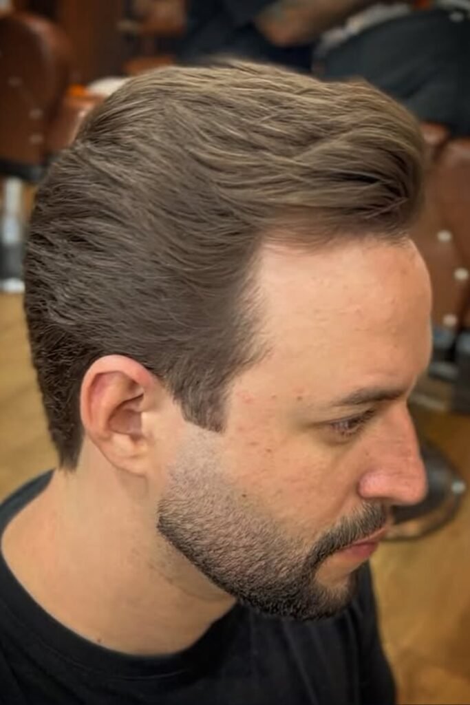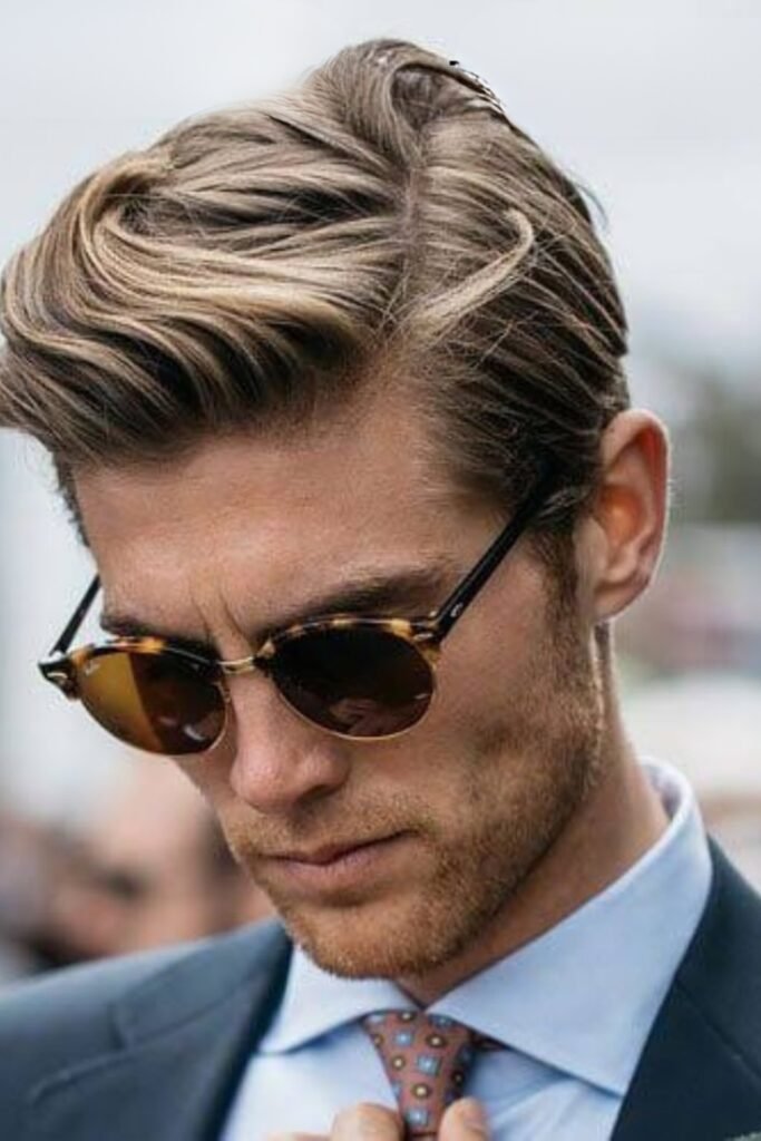 You can let it sweep cleanly to one side with enough length on top to stay sharp, not flat. The sides taper softly, which keeps your look polished without drifting into a modern fade.