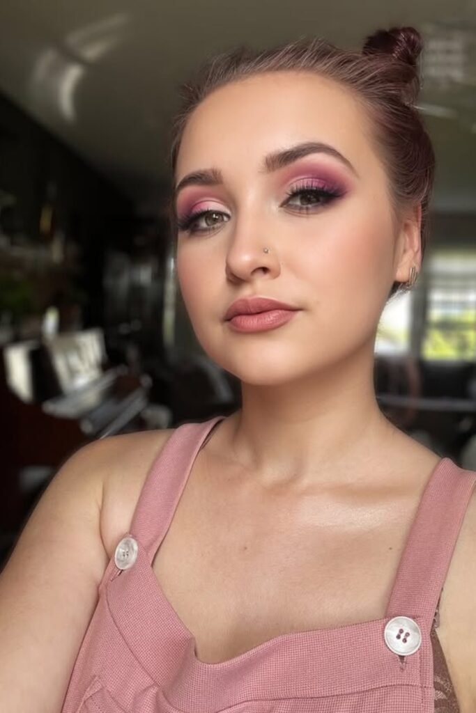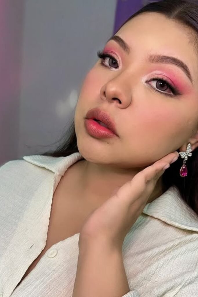 To try it, you should start by blending darker pink on your edges, fade it inward, and use a soft glow base so your makeup stays balanced.