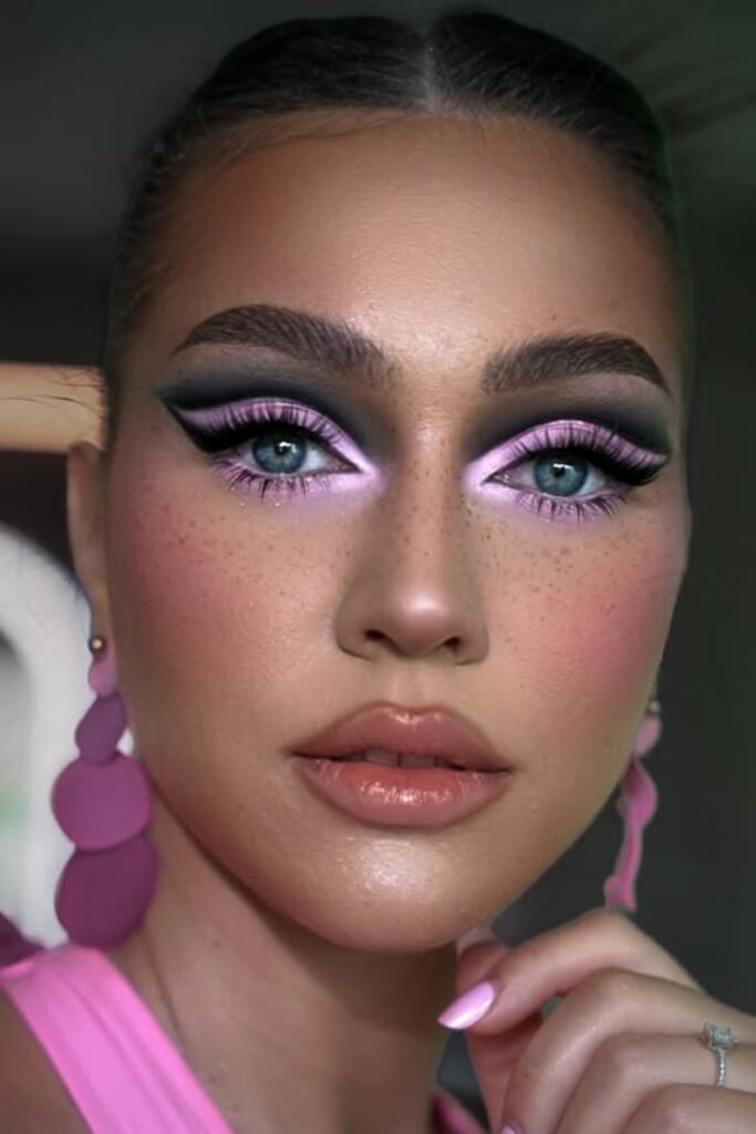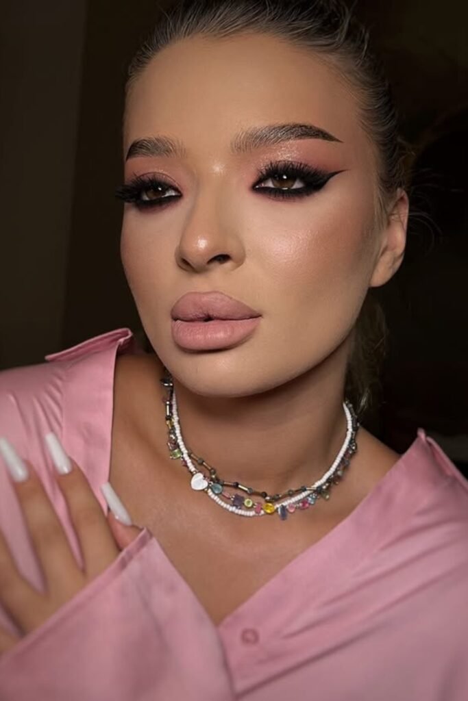 You bring the drama with this one. Bold, graphic lines frame soft pink shimmer, giving your eyes that fierce, editorial edge.