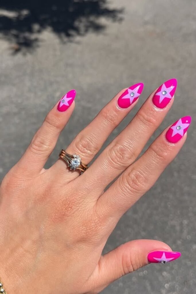 You don’t need heavy bling for bold color to stand out, while crisp white stars and a single rhinestone in the center keep the design playful instead of loud.