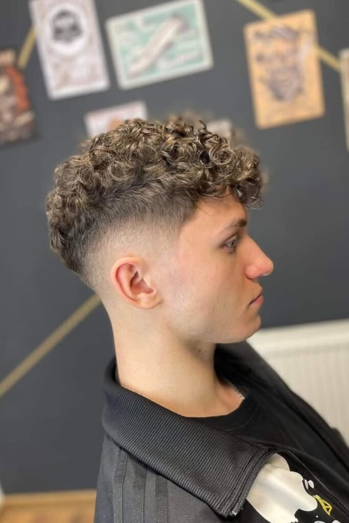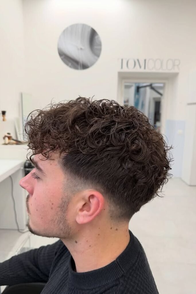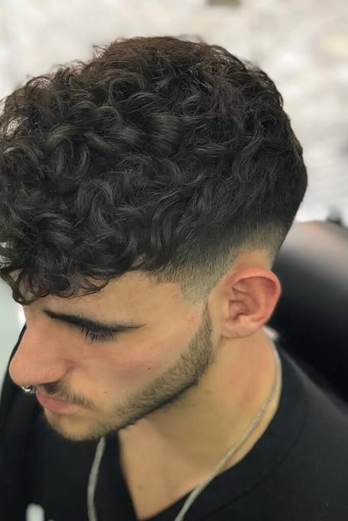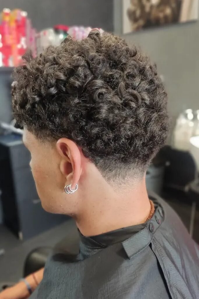 If you want a safe option for yourself, you can go for a taper or low fade with short curls left on top.