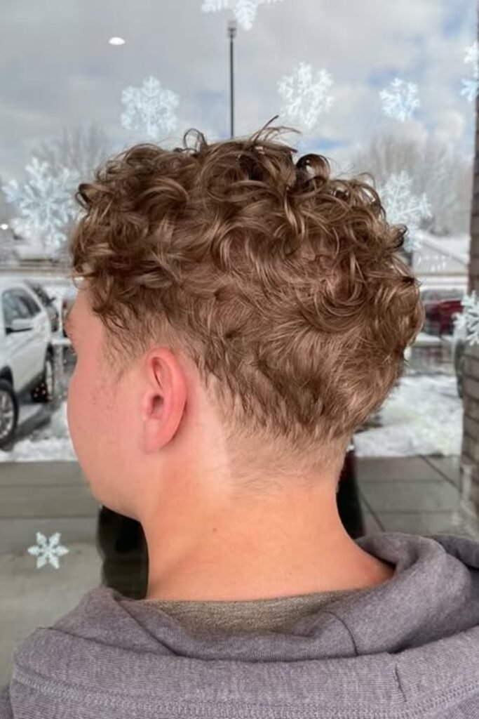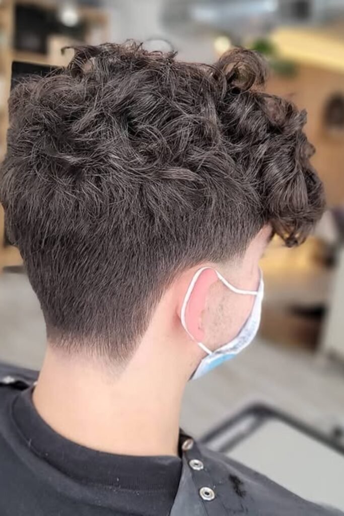 You’ll notice your curls stay long and textured on top while your sides are cut very short for contrast.