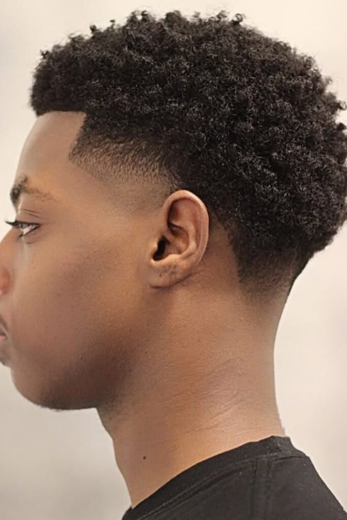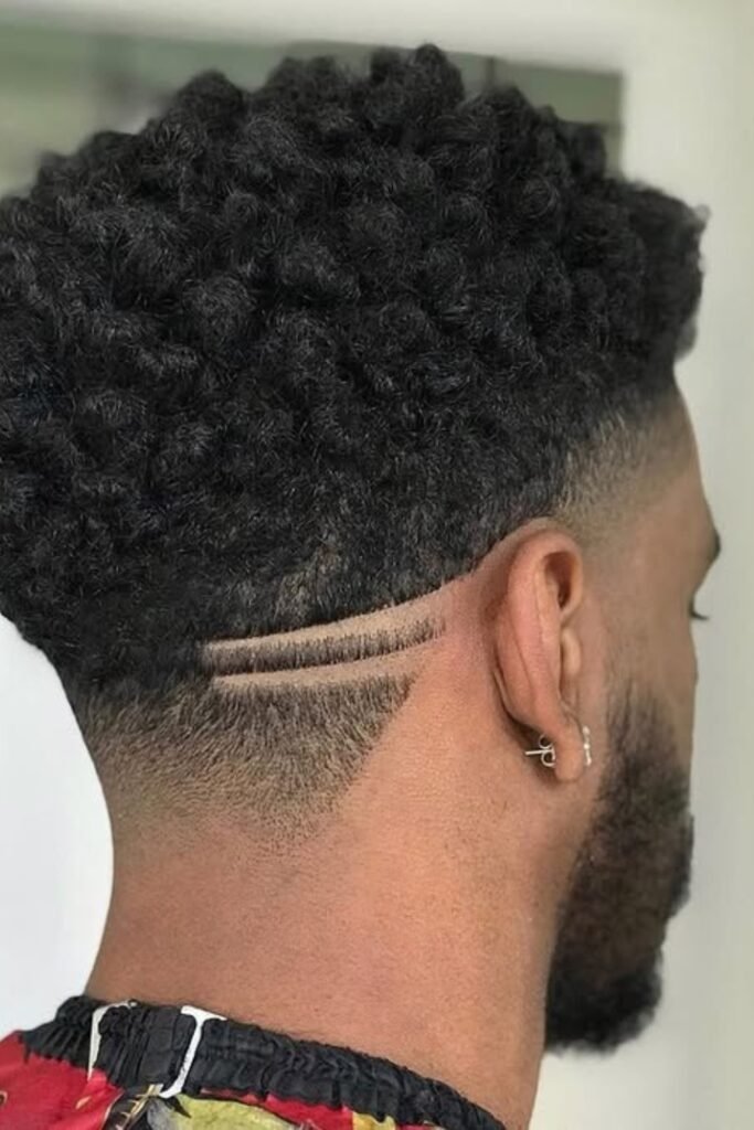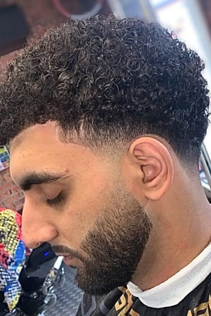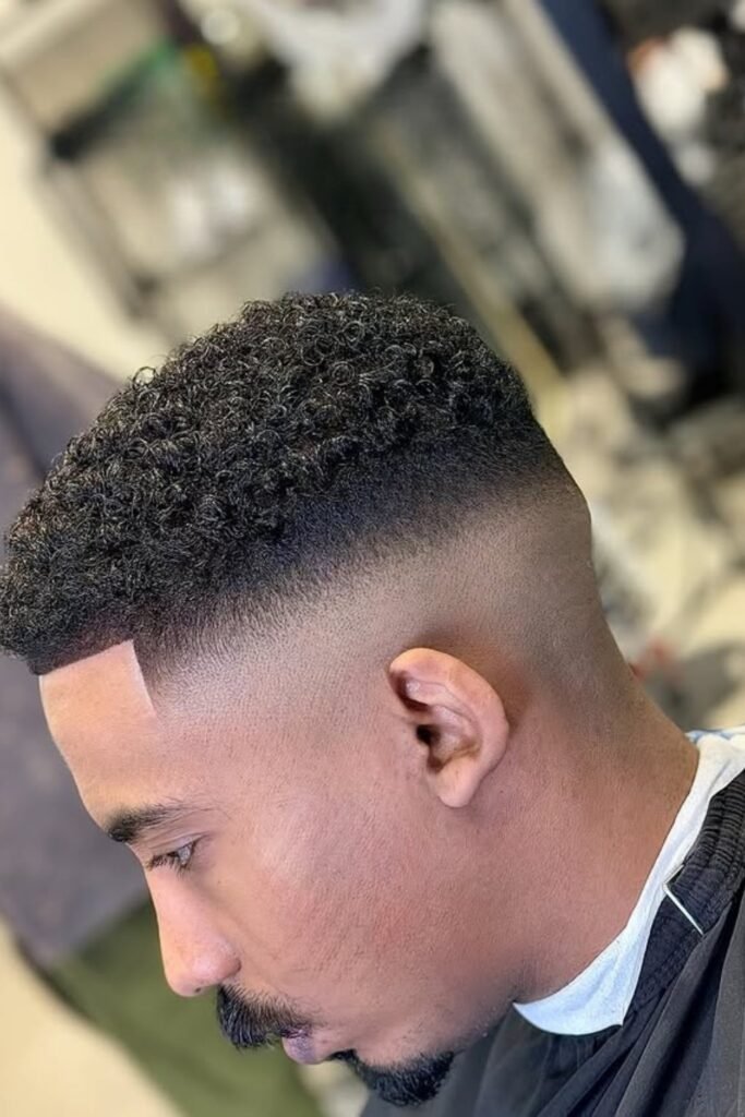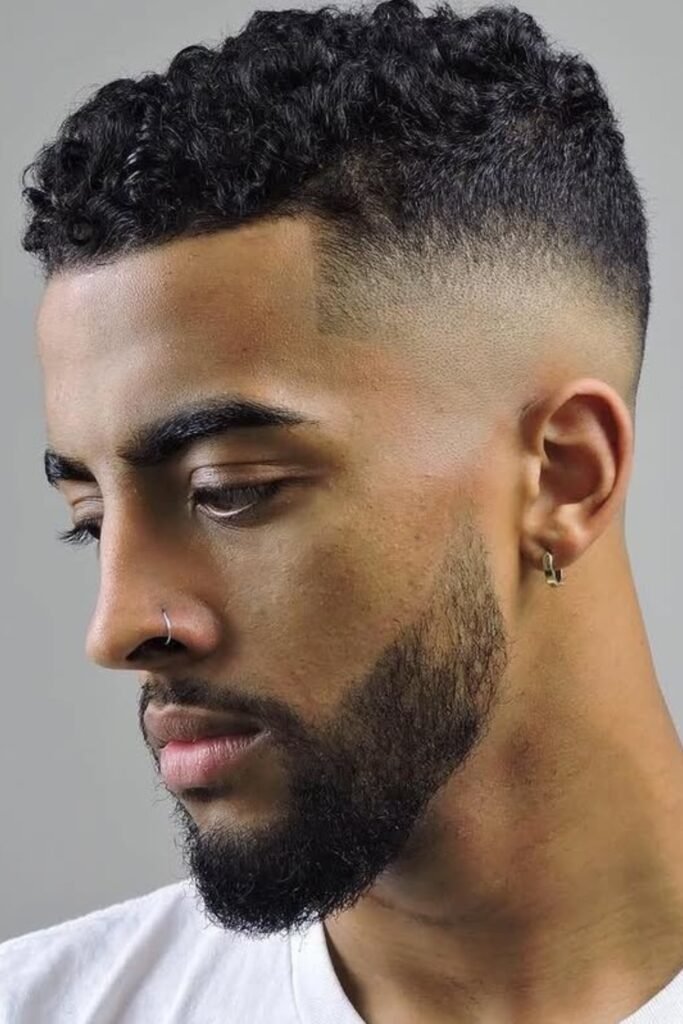 When you want a bold, modern cut and don’t mind frequent touch-ups, you can ask your barber for a high fade that blends smoothly into your curls.