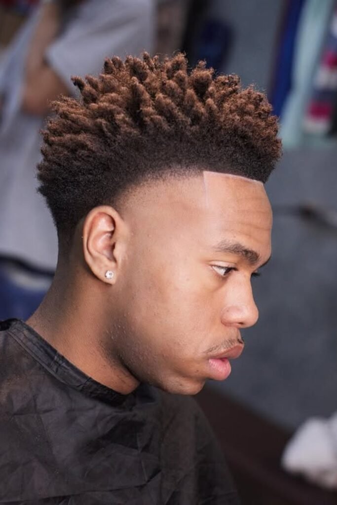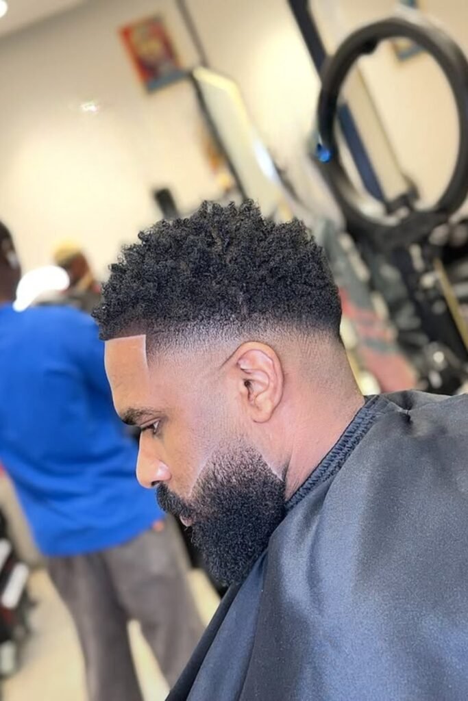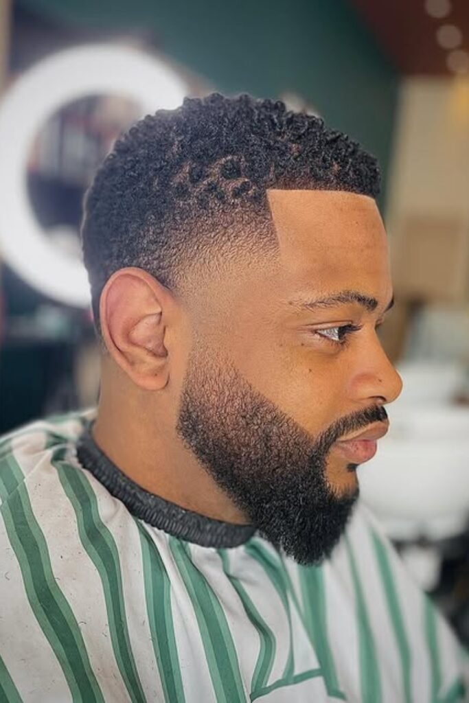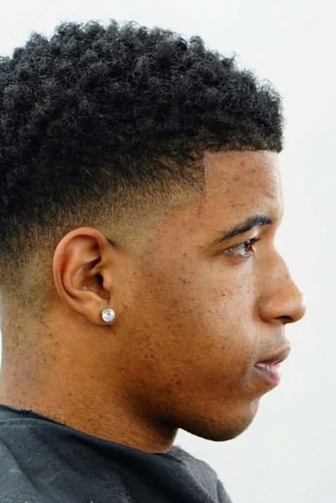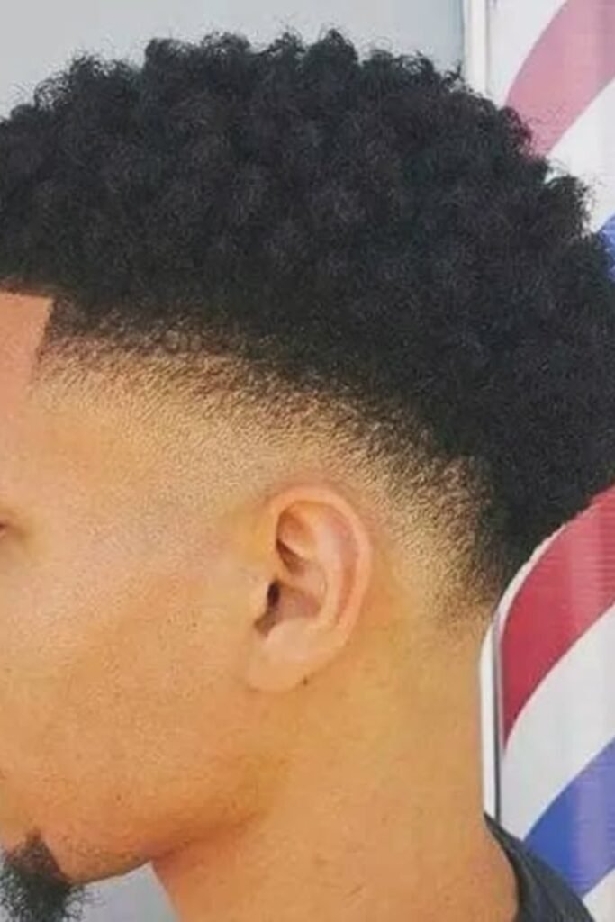 When you want a bold, modern cut and don’t mind frequent touch-ups, you can ask your barber for a high fade that blends smoothly into your curls.