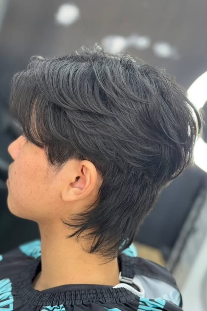You get that length in the back that gives you edge, but the tight layering on top keeps everything sharp and intentional.