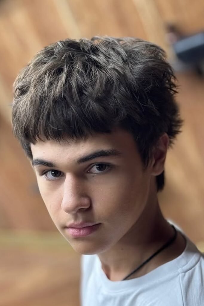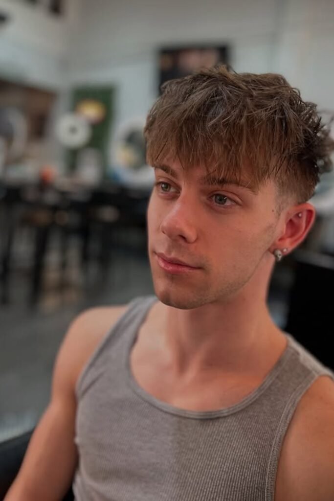 You keep the sides short and sharp, while the textured fringe gives you that messy, layered feel on top. It works best if your hair has some natural bend or if you know it can hold texture easily.