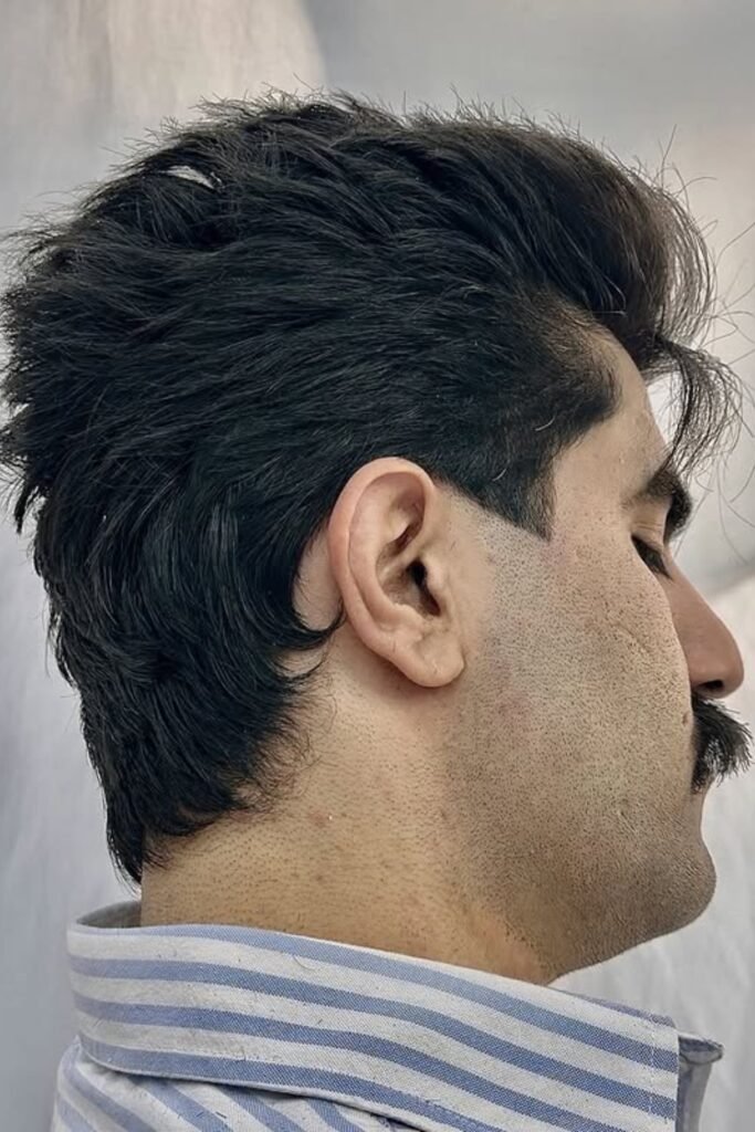 The sides stay tight without a harsh fade, and the layered top and back give you a clean, airy shape instead of a messy mullet.