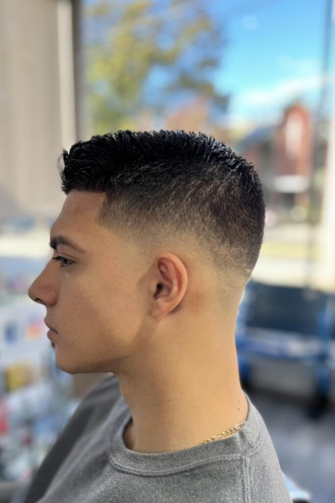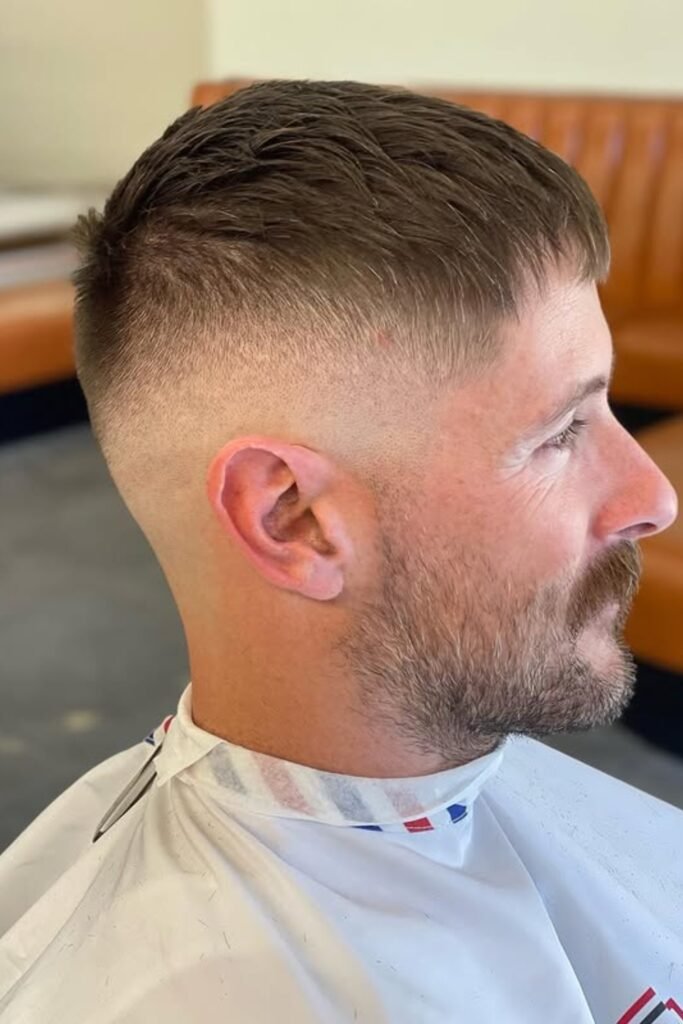 It’s ideal if you have a busy routine or prefer a clean, no-fuss haircut. You can tell your barber to keep the fade crisp and the top evenly trimmed.