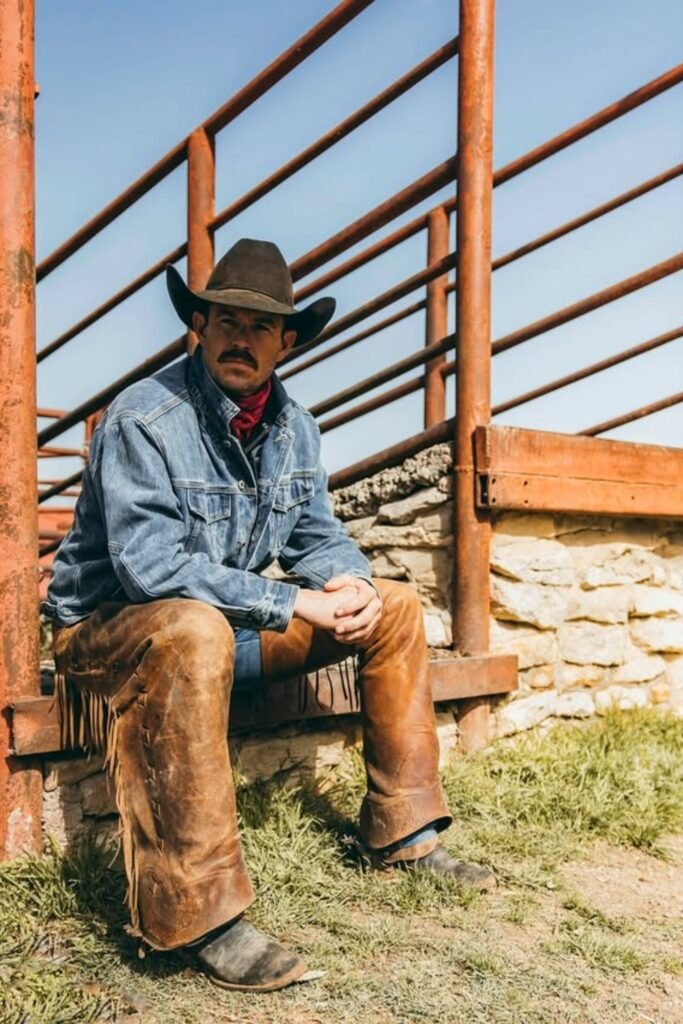 You can throw on a faded denim jacket over a simple shirt, then add brown leather chaps or rugged pants – you’ll instantly get that true cowboy edge.