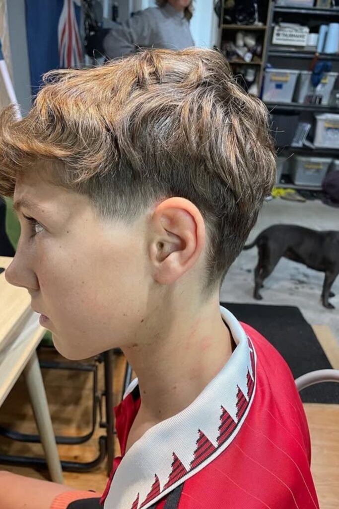The biggest difference with a teen haircut is balance, and you’ll notice it right away. The sides and back stay neat, but you don’t want them overdone.