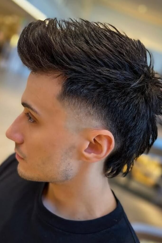 You’ll keep the sides tight with a smooth fade while leaving the top longer to sweep upward and slightly back. You can ask your barber to add light layers on top so your hair lifts easily.