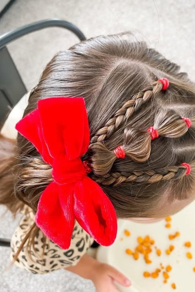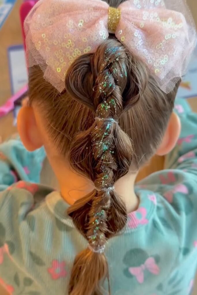 You can take a simple bubble braid and give it sparkle, perfect for parties, birthdays, or festive mornings.