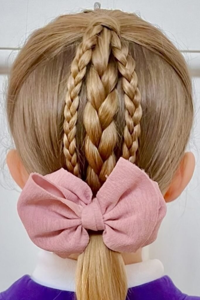 You can create a school-day hairstyle that’s neat, stylish, and completely out of the way with triple braids pulled into one ponytail.