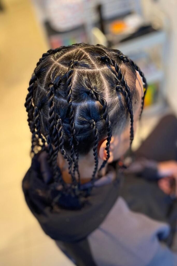You’ll notice the pattern adds structure on your scalp while your two strand twists still move freely.