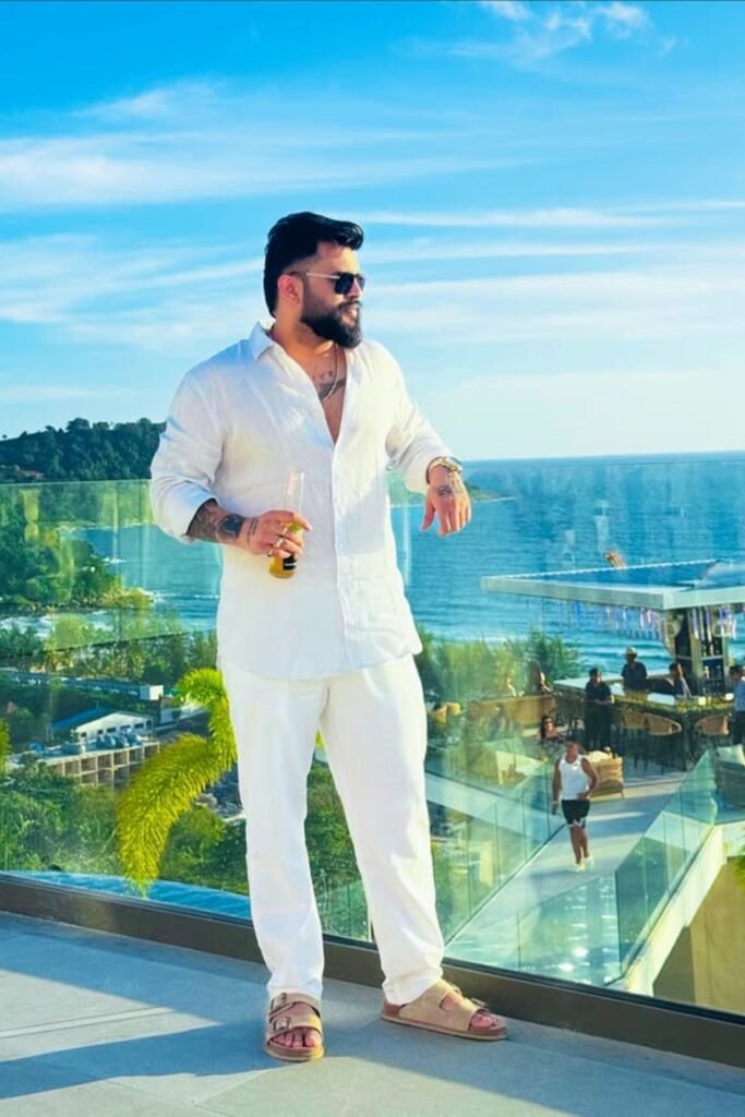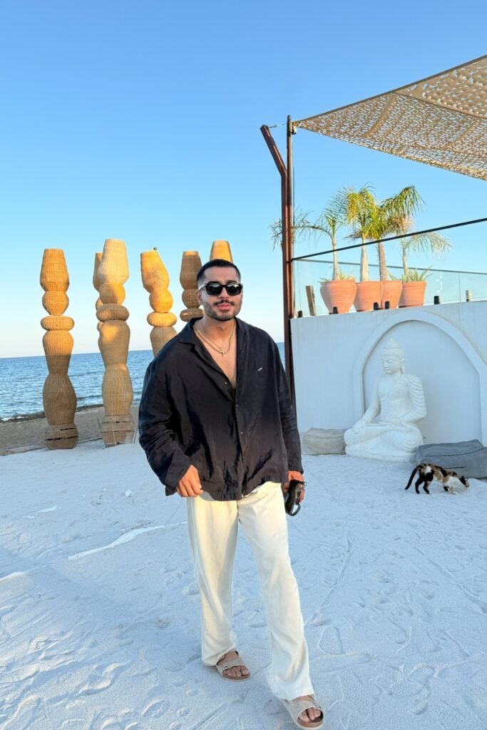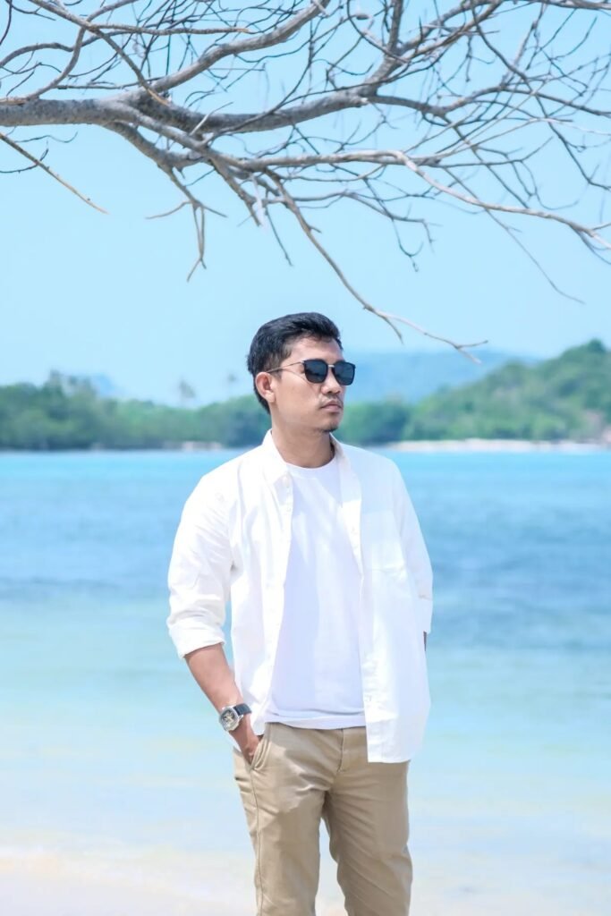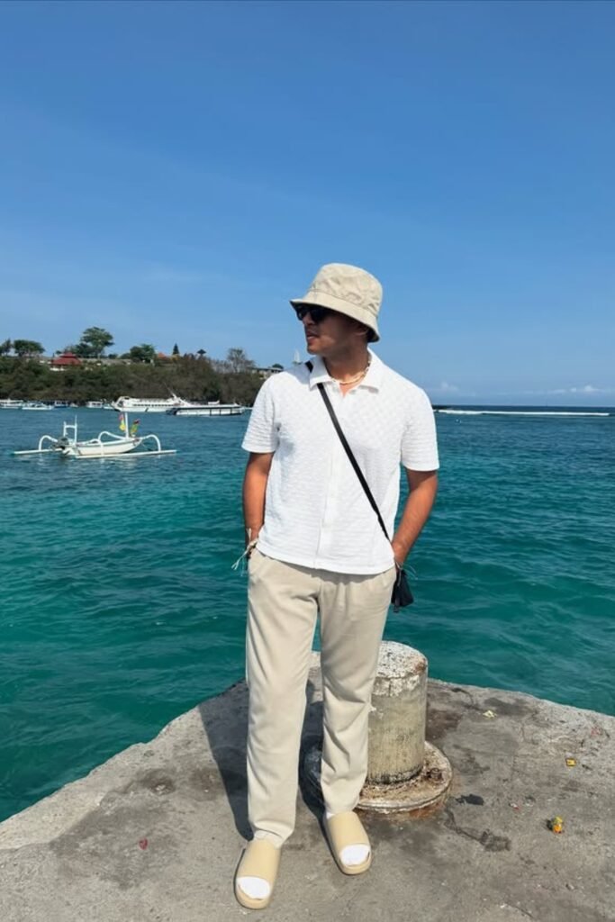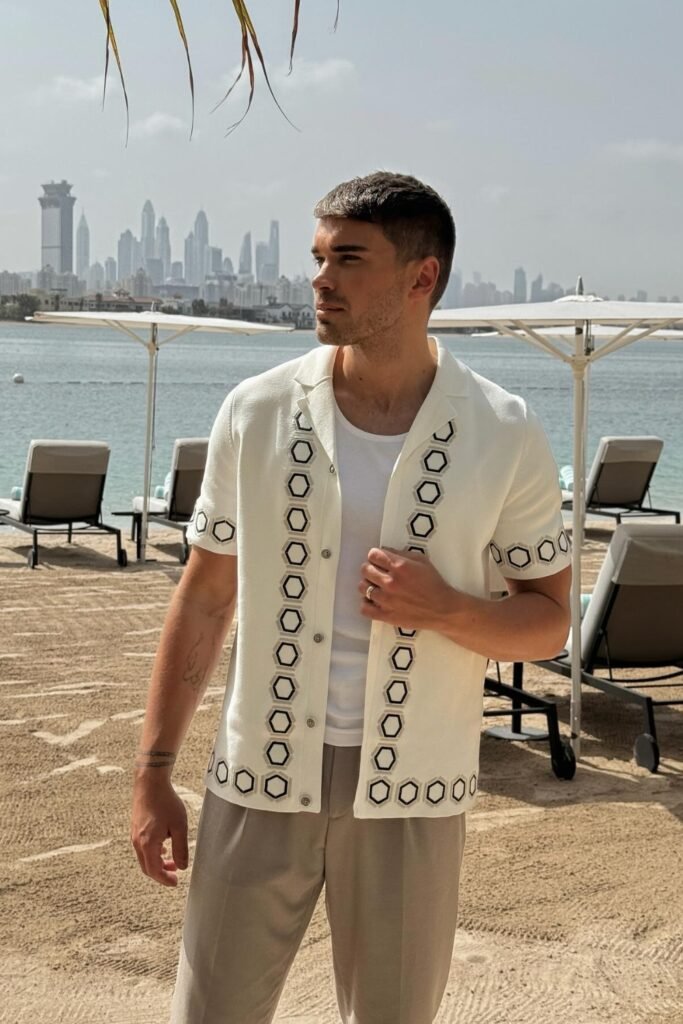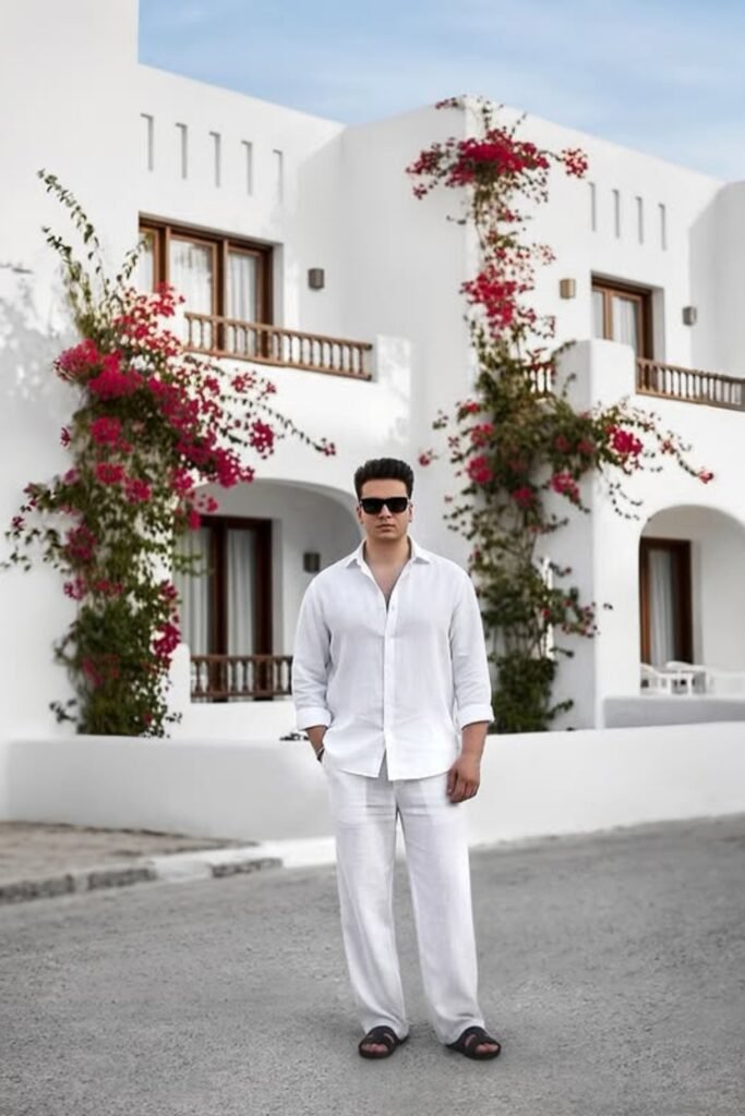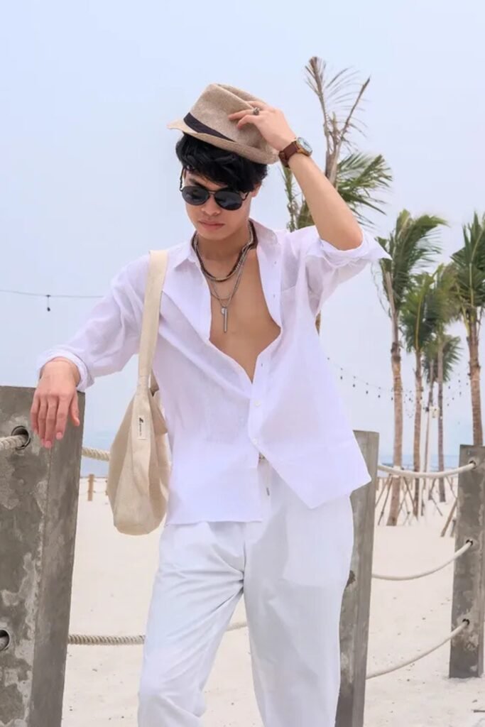 You’ll notice this works best for beach resorts, rooftop lounges, or sunset drinks when you want to look sharp without trying too hard.