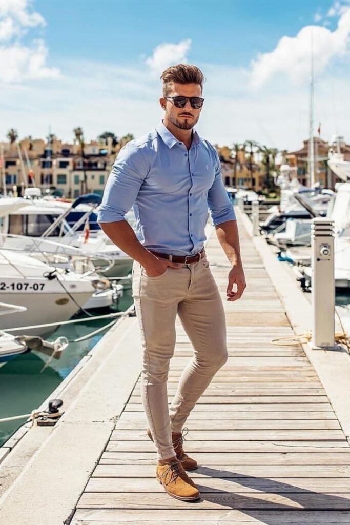 You can wear a fitted button-down with slim chinos, and you’ll get that clean, confident vibe instantly.
