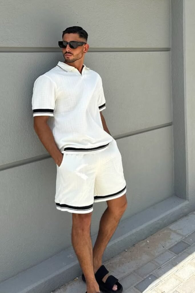 Sometimes, you want outfits that do all the work for you. You can pick a matching textured shirt and shorts set, and you’ll instantly look styled without overthinking it.