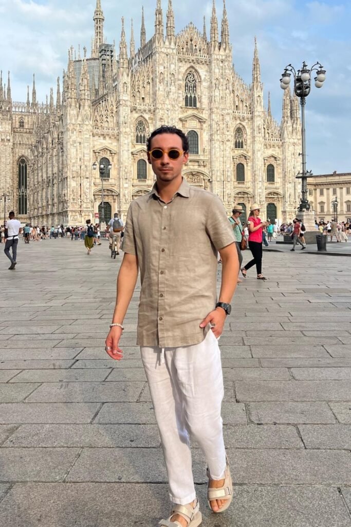 You can grab a white linen shirt and pair it with relaxed linen pants so you stay cool while still looking put together.