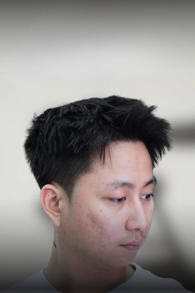 You’ll notice the sides are cut low and tight, which gives you structure right away, while the top stays short with natural texture so you don’t end up looking flat.
