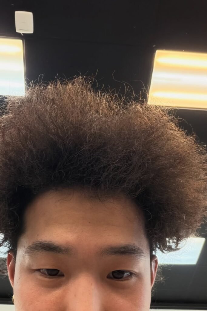 The sides are cleaned up just enough so your curls don’t spread too wide, but they’re not faded away completely.