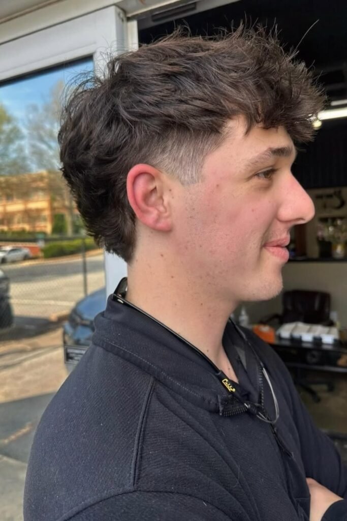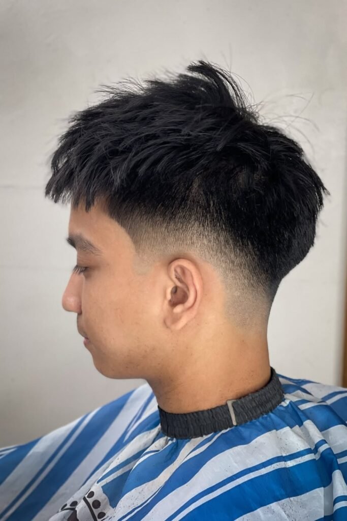 You’ll notice how the tight fade sharpens your face instantly, while the slightly rough texture on top keeps it from looking flat or boring.