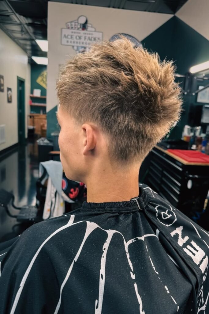 You’ll notice how the short, heavily textured top creates that aggressive warrior look right away, while the tight fade on the sides keeps everything clean.